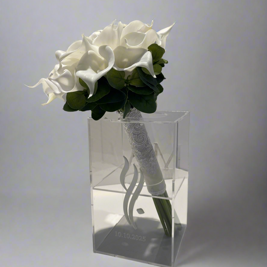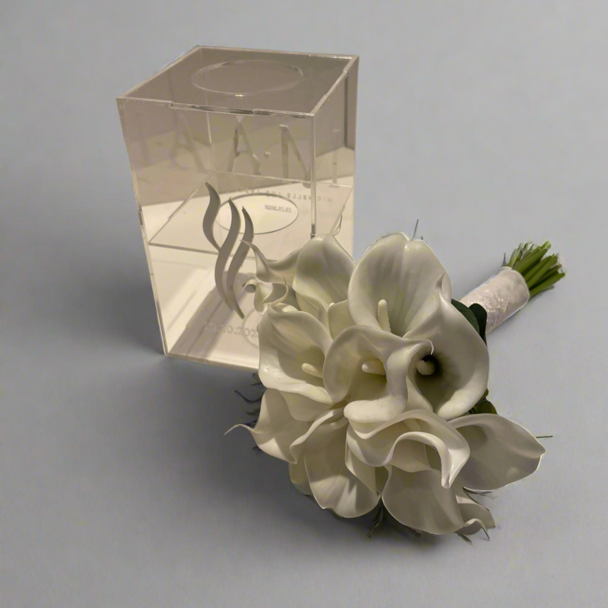 باقة زفاف أنيقة من زهور الكالا ليلي، ترمز إلى الرقي والحب النقي.